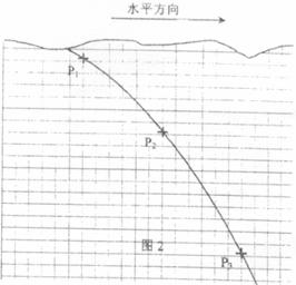 某同学利用图1所示装置做“研究平抛运动”的实验,根据实验结果在坐标纸上描出了小球水平抛出后的运动轨迹,但不慎将画有轨迹图线的坐标纸丢失了一部分,剩余部分如图2所示,图2中水平方向与竖直方向每小格的长度均代表0.10m,