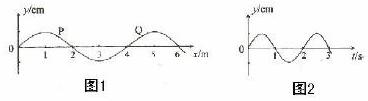 20.一列简箭横波在某一时刻的波形图如图1所示,图中P,Q两质点的横坐标分别为x=1.5 m和x=4.5m。P点的振动图像如图2所示。
