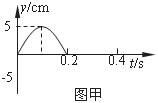 16.一质点以坐标原点为中心位置在y轴上做简谐运动,其振动图像如甲图所示,振动在介质中产生的简谐横波沿x轴正方向传播,波速为1m/s,从t=0时刻开始经过0.2s后此质点立即停止运动,则再经过0.3s时的波形图是图乙中的 ( )