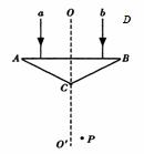17.如图所示,A、B、C为等腰棱镜,a、b两束不同频率的单色光垂直AB边射入棱镜,两束光在AB面上入射点到D的距离相等,两束光折射后相交于图中的P点,以下判断正确的是 ( )