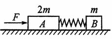 ,与地面间的摩擦不计。A、B间固定一轻弹簧,在水平推力F的作用下,A、B一起做匀加速直线运动,则
