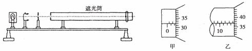 (3)将测量头的分划板中心刻线与某亮纹中心对齐,将该亮纹定为第1条亮纹,此时手轮上的示数如图甲所示。然后同方向转动测量头,使分划板中心刻线与第6条亮纹中心对齐,记下此时图乙手轮上的示数 mm,求得相邻亮纹的间距△x为