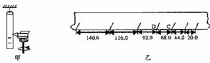 (Ⅰ)(6分)如图甲所示,包有白纸的质量为m的圆柱棒用细线竖直悬挂,蘸有颜料的毛笔固定在电动机上并随之转动。当烧断悬挂圆柱棒的线后,圆柱棒竖直自由下落,毛笔就在圆柱棒表面的纸上画出记号,如图乙所示,设毛笔接触棒时不影响棒的运动。测得记号之间的距离依次为20.0mm,44.0mm,68.0mm,92.0mm,116.0mm,140.0mm,已知电动机铭牌上标有“1200r/min”字样,根据以上内容,回答下列问题: