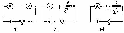 E:开关两只,导线若干。现有一同学设计了图甲、乙、丙所示的测量电路,请你选择一个实验可行的电路,利用这个电路完成测量电压表的内阻,要求测量尽可能准确。