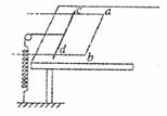 25.(21分)如图所示,在一光滑水平的桌面上,放置一质量为M、宽为L的足够长"U"形框架,其ab部分电阻为R,框架其他部分的电阻不计.垂直框架两边放一质量为m、电阻为R的金属棒cd,它们之间的动摩擦因数为μ,棒通过细线跨过一定滑轮与劲度系数为k、另一端固定的轻弹簧相连.开始弹簧处于自然状态,框架和棒均静止.现在让框架在大小为2 μmg的水平拉力作用下,向右做加速运动,引起棒的运动可看成是缓慢的.水平桌面位于竖直向上的匀强磁场中,磁感应强度为B.问: