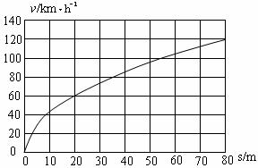 (2)若某汽车发生了车祸,已知该汽车刹车时的刹车距离与刹车前车速关系满足图示关系。交通警察要根据碰撞后两车的损害程度(与车子结构相关)、撞后车子的位移及转动情形等来估算碰撞时的车速,同时还要根据刹车痕判断撞前司机是否刹车及刹车前的车速。若估算出碰撞时车子的速度为45km/h,碰撞前的刹车痕为20m,则车子原来的车速是多少?