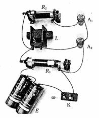 ② 先闭合开关K ,调节滑动变阻器R1和R2,使两灯泡亮度相同。断开开关K ,当再次闭合开关K 的瞬间。可以观察到灯泡A1 ________ ,灯泡A2___________。