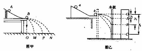II.将木板向右平移适当的距离,再使小球a从原固定点由静止释放。撞在木板上并在白纸上留下痕迹B;