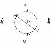 17.如图所示,O点是等量异种点电荷A、B连线的中点,PQ是AB连线的中垂线,CD、MN是圆O的直径,下列说法中正确的是 ( )