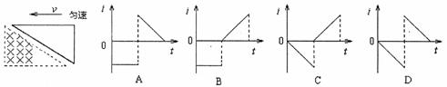21.如图所示,一直角三角形金属框(有一定电阻),向左匀速穿过一个方向垂直于纸面向里的梯形匀强磁场区,磁场仅限于如图所示的区域内,该区域延长线所围成的三角形与金属框是全等三角形,且金属框的一个顶点与磁场区域的下边在一直线上,上面的直角边与下面的虚线平行。磁场区宽度是下面直角边的一半.若取顺时针方向为电流的正方向,则金属框穿过磁场过程中能正确描绘感应电流随时间变化的图象是