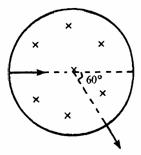 19.如图所示为圆柱形区域的横截面,内有垂直纸面的匀强磁场,磁感应强度为B ,一带电粒子(不计重力)以某一初速度沿截面直径方向射入时,穿过此区域的时间为t,粒子飞出此区域时,速度方向偏转60°角,如图所示,根据上述条件可求下列物理量中的 ( )