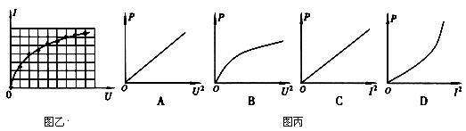 ③利用实验中得到的实验数据在I-U坐标系中,描绘出了图乙所示的小灯泡的伏安特性曲线。根据此图给出的信息,可以判断出图丙中正确的是(图中P为小灯泡功率)( )