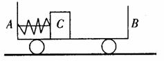 8.小车AB静置于光滑的水平面上,A端固定一个轻质弹簧,B端粘有橡皮泥。AB车质量为M,长为L,质量为m的木块C放在小车上,用细绳连结小车的A端并使弹簧压缩。开始时AB与C都处于静止状态,如图所示。当突然烧断细绳,弹簧被释放,使物体C离开弹簧向B端冲去,并跟B端橡皮泥粘在一起,以下说法中正确的是 ( )