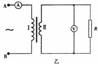 2.下图甲是线圈绕垂直于磁场的轴在匀强磁场中匀速转动时,所产生的正弦交流电图像,把该交流电压加在图乙中变压器的A、B两端。已知理想变压器原线圈Ⅰ和副线圈Ⅱ的匝数比为5:1,交流电流表和交流电压表均为理想表,电阻