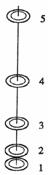 3.取一根长2m左右的细线,5个铁垫圈和一个金属盘。在线的一端系上第一个垫圈,隔12cm再系第二个垫圈,以后垫圈之间的距离依次为36cm、60cm、84cm,如下图所示。站在椅子上,向上提起线的上端,让线自由垂下,且第一个垫圈紧靠放在地上的金属盘。松手后开始计时,若不计空气阻力、细线质量和声音在空气中的传播时间,则第2、3、4、5个垫圈