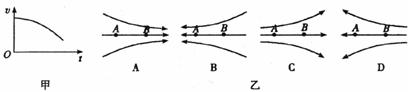 6.A、B是一条电场线上的两个点,一带负电的微粒仅在电场力作用下,以一定的初速度从A点沿电场线向B点运动,其速度一时间图像如下图甲所示。则这一电场可能是图乙中的