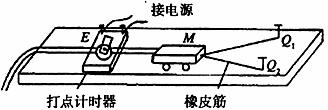 16.在做“探究功与物体速度变化关系”的实验时,某同学采用了下图所示的装置:橡皮筋穿过小车上的圆环,两端分别系在固定的铁钉Q1和Q2上,向后拉动小车使橡皮筋处于伸长状态,释放后,小车M在橡皮筋拉力的作用下,由静止开始带着穿过打点计时器的纸带沿木板运动.小车获得的速度可由打上点的纸带E测出,拉力做功的多少可通过橡皮筋的条数来改变(须保证拉力做的功与橡皮筋的条数成正比).进行若干次实验后,就得到若干组功和速度的数据.下列有关此实验的操作及数据处理,正确的是 (全选对的得4分;选对但不全的得2分;有选错或不答的得0分).