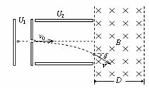 cm。带电粒子射出电场后进入方向垂直纸面向里的匀强磁场中。求: