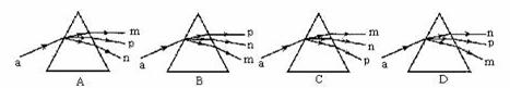 12.已知一束可见光a是由m、n、p三种单色光组成的。检测发现三种单色光中,n、p两种色光的频率都大于m色光;n色光能使某金属发生光电效应,而p色光不能使该金属发生光电效应。那么,光束a通过三棱镜的情况是图中的( )