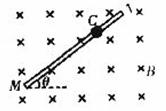 ,磁感线水平指向纸内,如图所示,棒上套一个可在其上滑动的带负电的小球C.小球质量为m,带电量为q,球与棒间动摩擦因数为