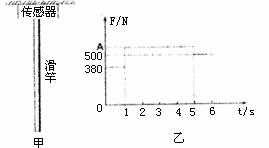 13.如图所示为学校操场上以质量不计的竖直滑杆,滑杆上端固定。为了研究学生沿杆的下滑情况,在杆顶部装有一拉力传感器,可显示杆顶部所受力的大小。现有一学生(可视为质点)从上端由静止开始滑下,5s末滑到杆底端时速度恰好为零,并在底端停留了一小段时间。以学生开始下滑时刻为计时起点,传感器显示的拉力随时间变化的情况如图乙所示,g取10m/s2。求: