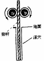 16.如图是建筑工地常用的一种“深坑打夯机”,电动机带动两个滚轮匀速转动将夯杆从深坑提上来,当夯杆底端刚到达坑口时,两个滚轮彼此分开,将夯杆释放,夯杆只在重力作用下运动,落回深坑,夯实坑底,且不反弹。然后两个滚轮再次压紧,夯杆被提到坑口,如此周而复始。已知两个滚轮边缘的线速度恒为v=4m/s,滚轮对夯杆的正压力N=2×104N,滚轮与夯杆间的动摩擦因数μ=0.1,夯杆质量m=1×103kg,坑深h=6.4m,假定在打夯的过程中坑的深度变化不大,可以护绿,取g=10m/s2。求:
