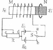 4.一长直铁芯上绕有一固定线圈M,铁芯右端与一木质圆柱密接,木质圆柱上套有一闭合金属环N,N可在木质圆柱上无摩擦移动。M连接在如图所示的电路中,其中R为滑线变阻器,