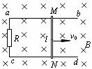 20.如下图所示,两条平行金属导轨ab、cd置于匀强磁场中,磁场方向垂直纸面向里,两导轨间的距离l=0.6m,导轨光滑且电阻不计。金属杆MN(电阻不计)在拉力F的作用下沿两条导轨向右匀速滑动,速度v=10m/s,产生的感应电动势为3V,定值电阻R=6Ω。求磁场的磁感应强度和拉力F的大小。