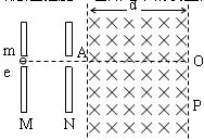 21.电子自静止开始经M、N板间(两板间的电压为U)的电场加速后从A点垂直于磁场边界射入宽度为d的匀强磁场中,电子离开磁场时的位置P偏离入射方向的距离为L,如图所示,求电子射入磁场时的速度和匀强磁场的磁感应强度.(已知电子的质量为m,电量为e)