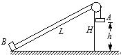 20.(10分)如图所示,光滑斜面的长为L=1 m、高为H=0.6 m,质量分别为mA和mB的A、B两小物体用跨过斜面顶端光滑小滑轮的细绳相连,开始时A物体离地高为h=0.5 m,B物体恰在斜面底端,静止起释放它们,B物体滑到斜面顶端时速度恰好减为零,求A、B两物体的质量比mA︰mB。