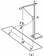 14.(10分)某同学用如图(a)所示的装置来验证小球从A运动到B过程中的机械能守恒.让一个小球由静止开始从A位置摆到B位置,悬点O正下方P点处放有水平放置炽热的电热丝,当悬线摆至电热丝处时被烧断,小球向前飞出做平抛运动。在地面上铺放白纸,上面覆盖着复写纸,当小球落在复写纸上时,会在下面白纸上留下痕迹.用重锤线确定出A、B点的投影点N、M.重复实验10次(小球每一次都从同一点由静止释放),球的落点痕迹如图(b)所示,图中米尺水平放置,零刻度线与M点对齐,量出M、C之间的距离x,再用米尺量出AN的高度h1、BM的高度h2,即可验证机械能守恒定律.已知小球的质量为m,当地的重力加速度为g.