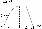 16.(10分)某探究性学习小组对一辆自制小遥控车的性能进行研究。他们让这辆小车在水平地面上由静止开始运动,并将小车运动的全过程记录下来,根据记录的数据作出如图所示的v-t图象.已知小车在0-ts内做匀加速直线运动;ts-10s内小车牵引力的功率保持不变,其中7s-10s为匀速直线运动;在10s末停止遥控让小车自由滑行,小车质量m=1kg,整个过程中小车受到的阻力大小不变.求: