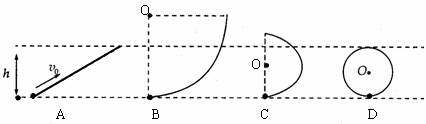 3.如图所示,小球以初速度v0竖直上抛,它能到达的最大高度为h,下图中A是光滑斜面、B是轨道半径大于h的光滑圆轨道、C是轨道半径小于h的光滑圆轨道、D是轨道直径等于h光滑圆轨道。小球在底端时的初速度都为v0,则小球在上述四种情况中能到达高度h的有 ( )