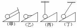 C.丙图中球对斜面的压力最小 D.丁图中球对斜面的压力最小