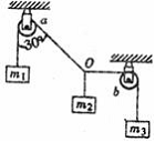 25.如图所示,3根轻绳一端分别系住质量为m1、m2、m3的物体,它们的另一端分别通过光滑定滑轮系于O点,整个装置处于平衡状态时,Oa与竖直方向成30°,Ob处于水平状态,则