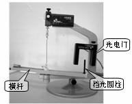 28.在下图所示的实验装置中,横杆能够绕竖直轴旋转,横杆在转动过程中,由于摩擦阻力的作用,横杆会越转越慢。在横杆的一端装有宽度为d=0.005m的竖直“挡光圆柱”,当“挡光圆柱”通过光电门时,光电门就记录挡光的时间间隔,“挡光圆柱”宽度与挡光时间之比,可以近似认为是“挡光圆柱”在该时刻的速度。横杆每转一圈,光电门就记录一次“挡光圆柱”挡光时间。