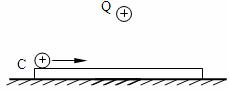 20.如图所示,在水平放置的足够大金属板的正上方有带正电的点电荷Q。一表面绝缘并带正电的小球C(可视为质点,且不影响原电场分布)以速度V0在金属板上自左向右运动,在运动过程中C的带电量保持不变,它与金属板之间的摩擦不能忽略,则关于C的这段运动过程,下列说法正确的是 ( )