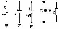 21.如图所示,用甲、乙、丙三个电动势ε相同而内电阻r不同的电源,分别给定值电阻R 供电。已知甲、乙、丙三个电源的内电阻的大小关系为:r甲>r乙>r丙,且r乙=R,则将 R先后接在这三个电源上时的情况相比,下列说法中正确的是 ( )