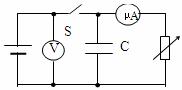 ⑵接通电键S,调节电阻箱R的阻值,使微安表的指针接近满刻度.记下这时的电压表读数U0=6.2V和微安表读数I0=490μA;