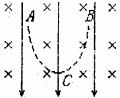11.空间存在竖直向下的匀强电场和水平方向(垂直纸面向里)的匀强磁场,如图所示,已知一不计重力的带电粒子在电场力和洛仑兹力共同作用下,由静止开始自A点沿曲线ACB运动,到达B点时速度为零,C为运动的最低点。则( )