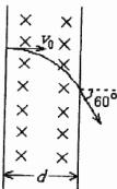 ,方向既垂直于磁场又垂直于左边界,穿出磁场时速度方向与电子原来入射方向夹角为60°,求: