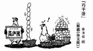 23.观察下面这幅题为《巧干活》的漫画,请指明该漫画的寓意(15字以内)。(3分)