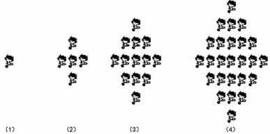 10.图(1)、(2)、(3)、(4)分别包含1个、5个、13个、25个第二十九届北京奥运会吉祥物“福娃迎迎”,按同样的方式构造图形,设第