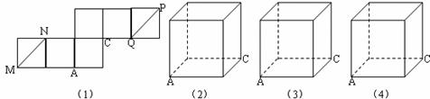 如图,图(1)是一个正方体的表面展开图,MN和PQ是两条面对角线.