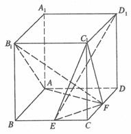如图,在棱长为1的正方体ABCD-A1B1C1D1中,点E是棱BC的中点,点F是棱CD的中点。