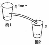 如下图所示,桶1中的水按一定规律流入桶2中,已知开始时桶1中有