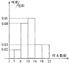 根据样本的频率分布直方图估计,样本数据落在[6,10]内的频数为 ,数据落在(2,10)内的概率约为 。