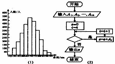 表示身高(单位:cm)在[150,155]内的学生人数。图(2)是统计图(1)中身高在一定范围内学生人数的一个算法流程图。现要统计身高在160-180cm(含160cm,不含180cm)的学生人数,那么在流程图中的判断框内应填写的条件是( )