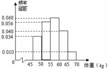 )进行统计,得到如图所示的频率分布直方图,则学生体重在60