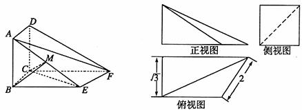 19.如下图所示的多面体,它的正视图为直角三角形,侧视图为矩形,俯视图为直角梯形(尺寸如下图所示)